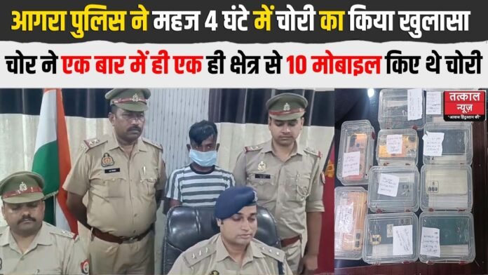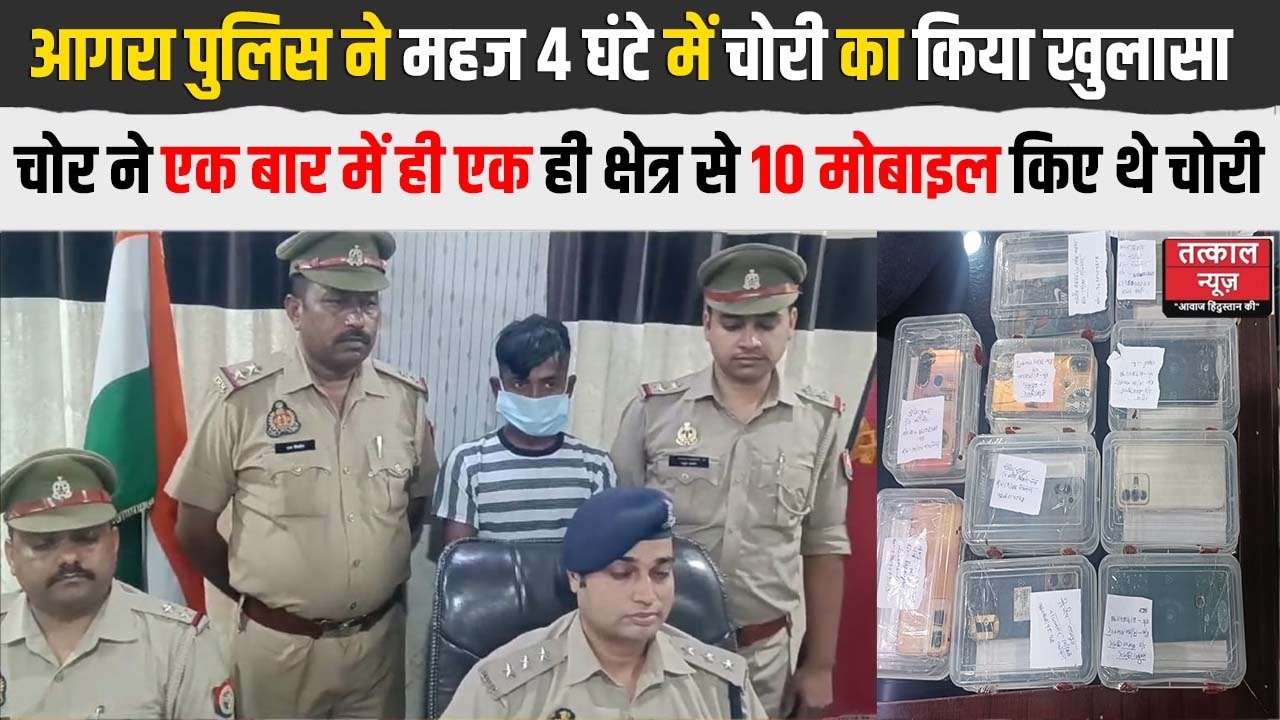 आगरा पुलिस ने महज 4 घंटे में चोरी का किया खुलासा चोर ने एक बार में ही एक ही क्षेत्र से 10 मोबाइल किए थे चोरी शातिर चोर महगे फोन रखने का रखता था शौक पुलिस ने शातिर चोर से 10 मोबाइल किये बरामद शातिर चोर रात मे लोगों के सो जाने पर चोरी की वारदातों को देता था अंजाम थाना लोहा मंडी पुलिस ने शातिर चोर को किया गिरफ्तार कर भेजा जेल मोबाइलों की अनुमानित कीमत लगभग ₹2लाख बताई एसीपी लोहा मंडी मयंक तिवारी ने पुलिस टीम को 10000 रुपए देने की घोषणातत्काल न्यूज़ आगरा से धर्मेंद्र ठाकुर की रिपोर्ट